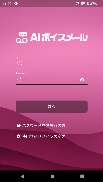ユーザーIDとパスワードが一致している場合、スマートフォンアプリケーションの、ボイスメール一覧画面に遷移します。